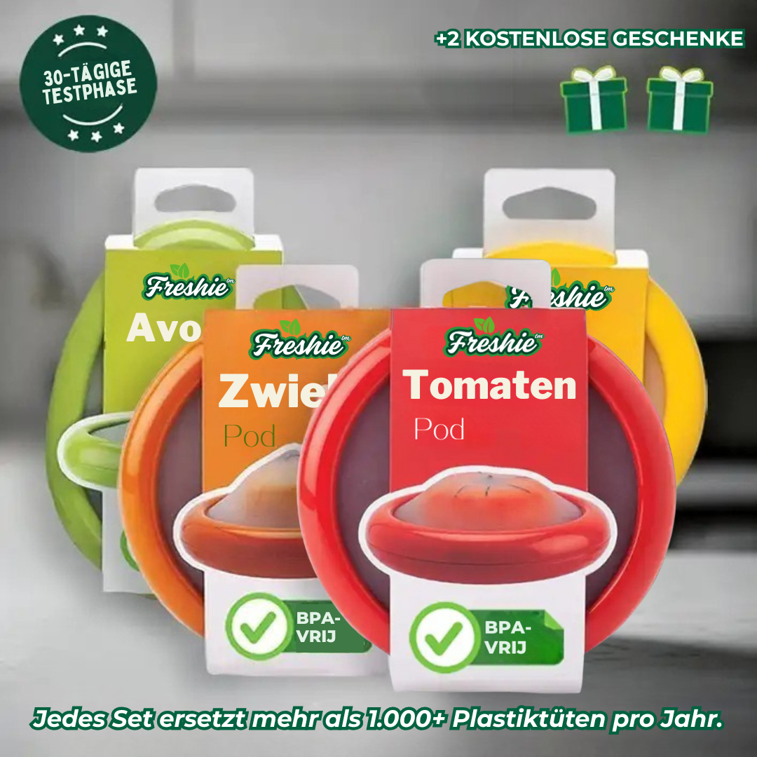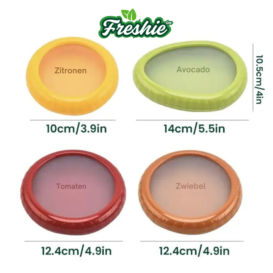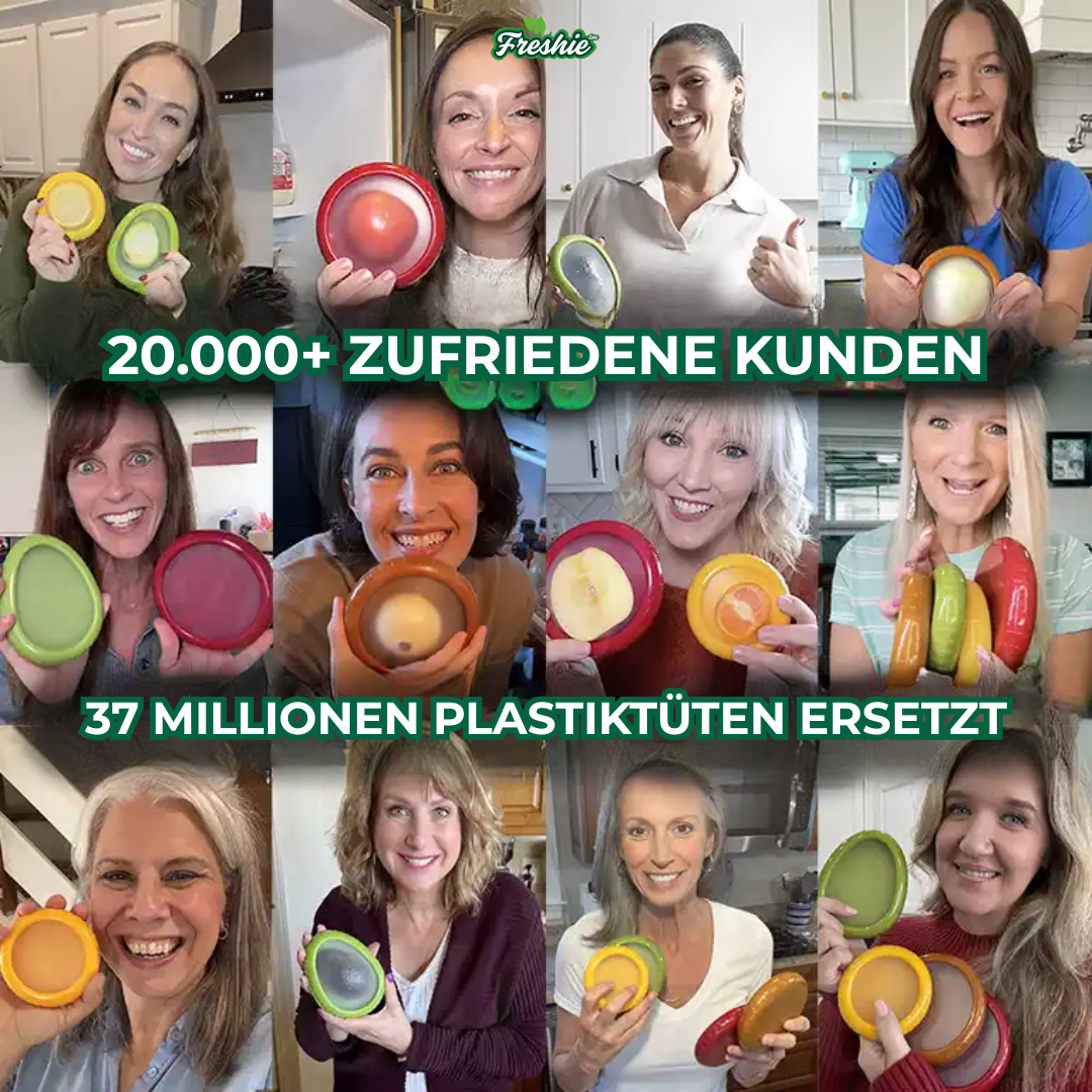 Freshie sind intelligente Silikonschutzvorrichtungen, die Obst und Gemüse länger frisch halten. Sie sind dehnbar, BPA-frei und schließen dicht, ohne dass Sie Einwegplastik verwenden müssen.