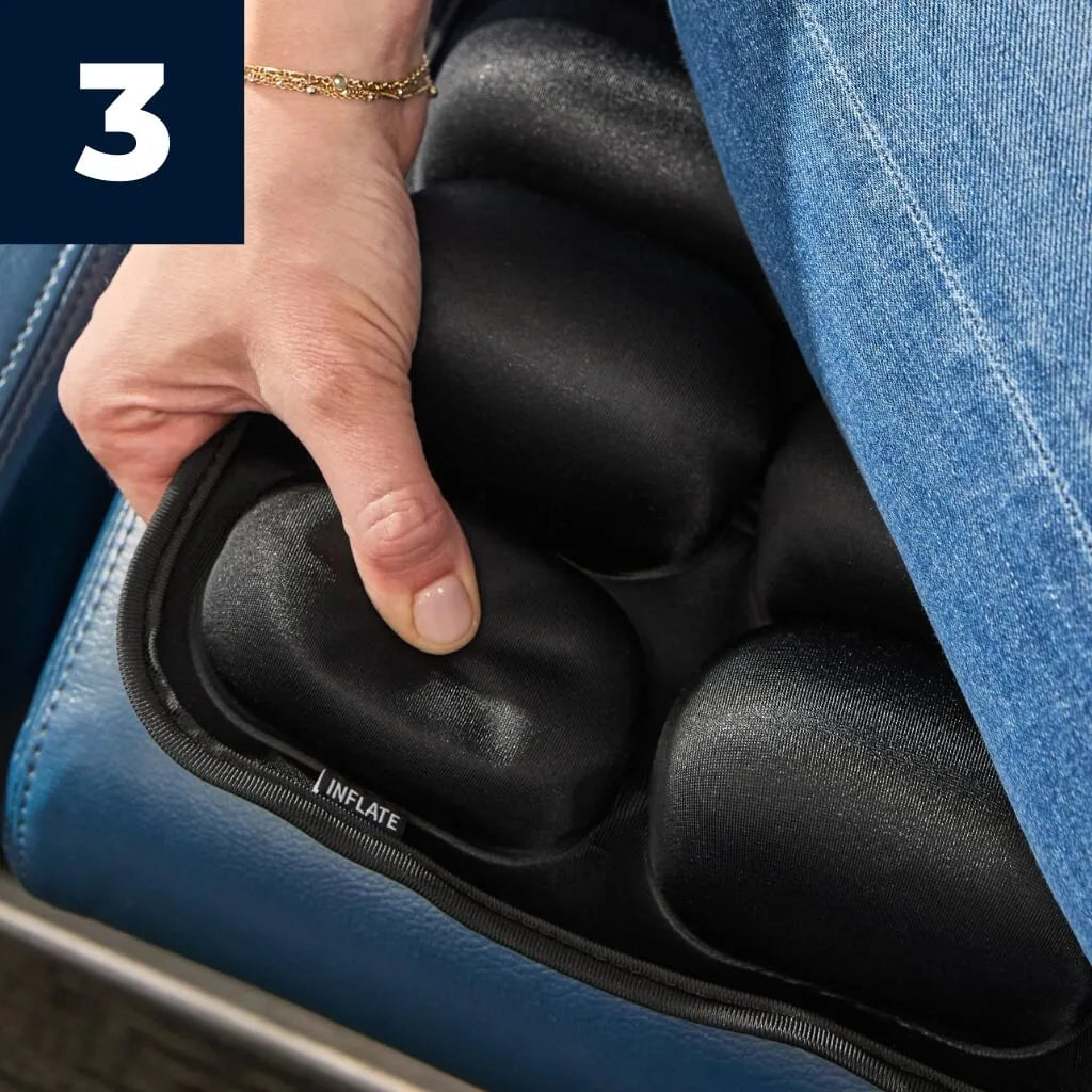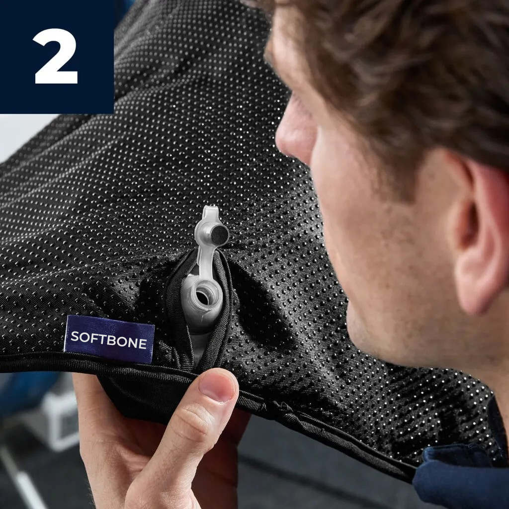 Mit dem Softbone-Kissen können Sie den Komfort ganz nach Ihren Vorstellungen anpassen, damit es immer genau so ist, wie Sie es mögen. Wenn Sie das Kissen fester oder weicher haben möchten, können Sie es einfach mit der eingebauten Pumpe aufblasen oder per Knopfdruck Luft ablassen, während Sie bequem darauf sitzen.