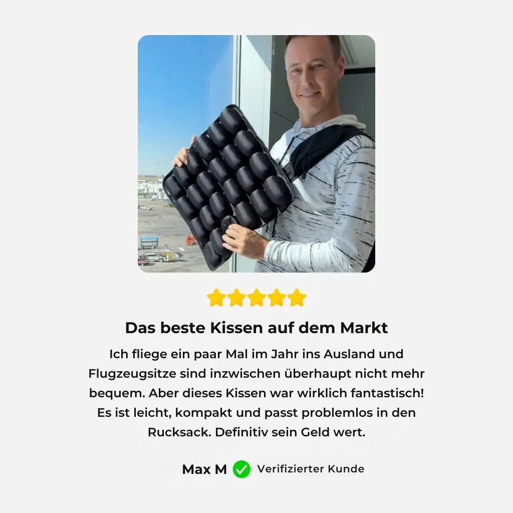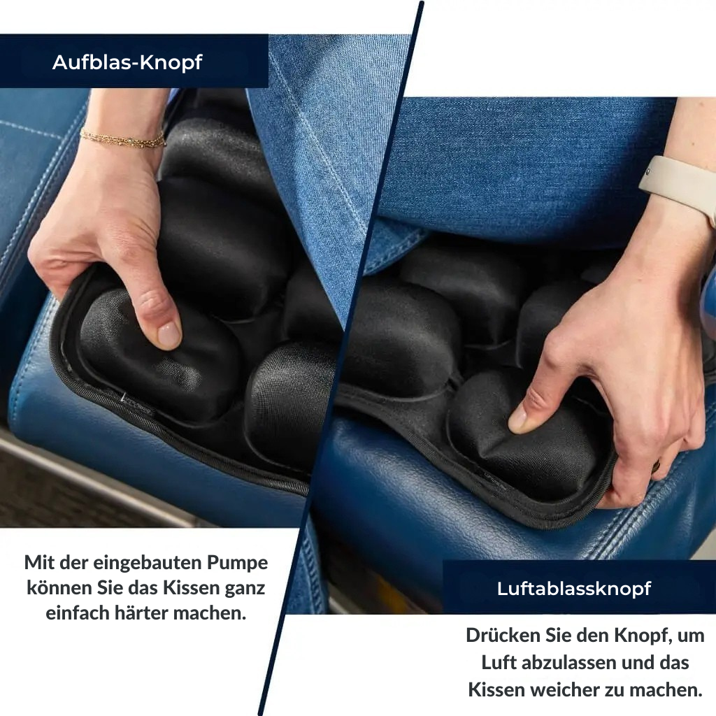 Viele Menschen haben beim Einsatz des Softbone Reisekissens auf Reisen eine spürbare Verbesserung bei Schmerzen und Unwohlsein bemerkt. Die 24 luftgefüllten Polster sorgen für eine gleichmäßige Druckverteilung und passen sich sanft der Form Ihres Gesäßes an, wodurch Unterstützung und Entlastung dort geboten wird, wo es benötigt wird.